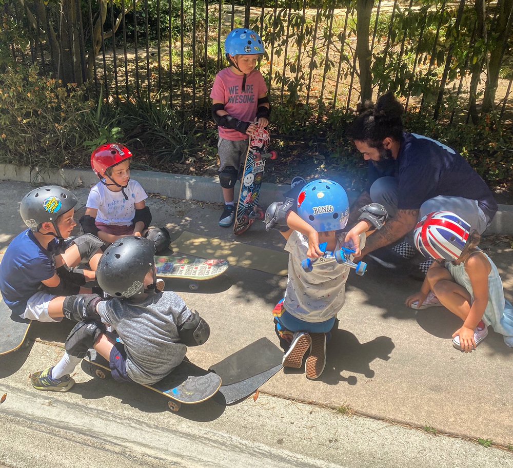 "Rob is a great coach! He has taken our little guy (4 years old) from not being able to stand on a skate board, to ripping around the park in a few short months. Two thumbs up!"
